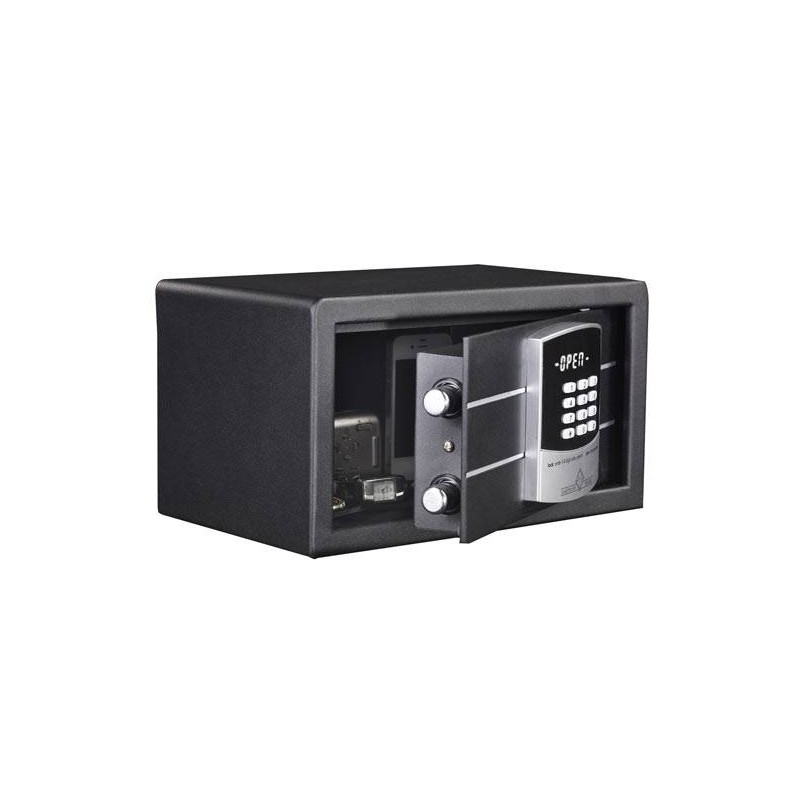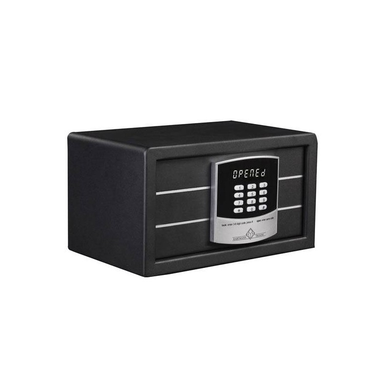 Ces coffres forts sont spécialement étudiés pour les hôtels. Leur construction est solide, le corps est en 20/10e et la porte de 50 mm a un blindage de 6 mm. Le verrouillage se fait par pênes motorisés de 20 mm.