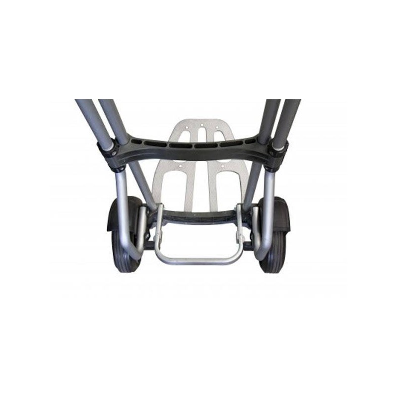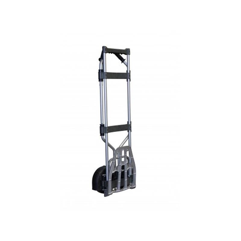 Diable léger repliable en aluminium extrêmement plat ayant un tablier haut offrant une grande portance pour le transport des charges volumineuses.