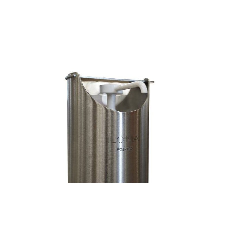 Sa commande sur pied supprime tout contact des mains avec le support. ILONA ne nécessite aucune installation. Il est autostable, anti-vandalisme et très résistant. Il s'adapte à toutes les bouteilles standard. La station peut également être fixée au sol.