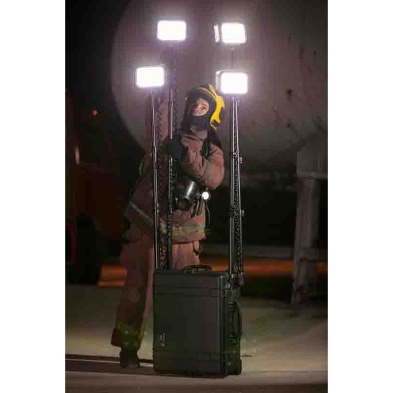 Ce modèle fait partie de la gamme Peli des systèmes d'éclairage de zones qui proposent des alternatives pratiques et écologiquement responsables aux torches peu économiques car alimentées par générateur.