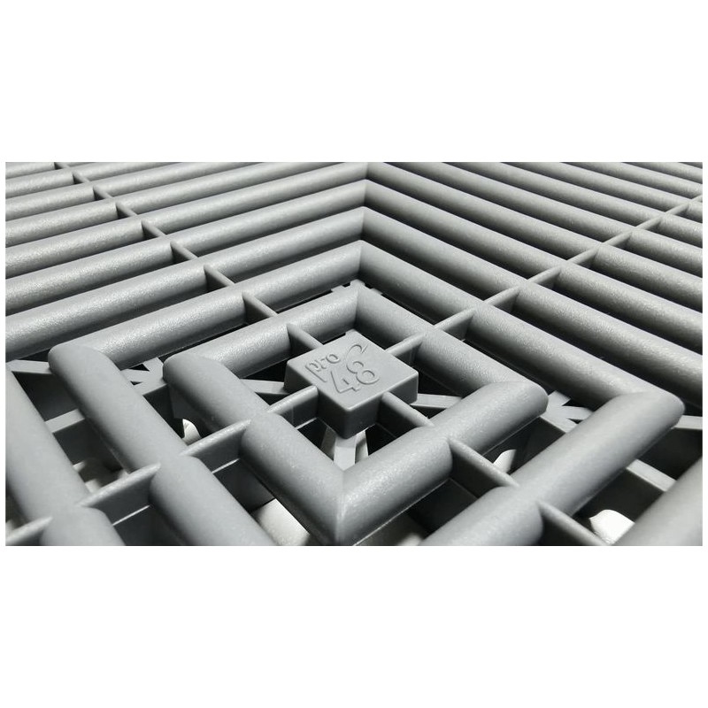 | 40 x 40 x 1.8 cm | Gris RAL 7012 | 040701004 | jusqu'à 25 t / m² | Polypropylène PP | 3.3 |