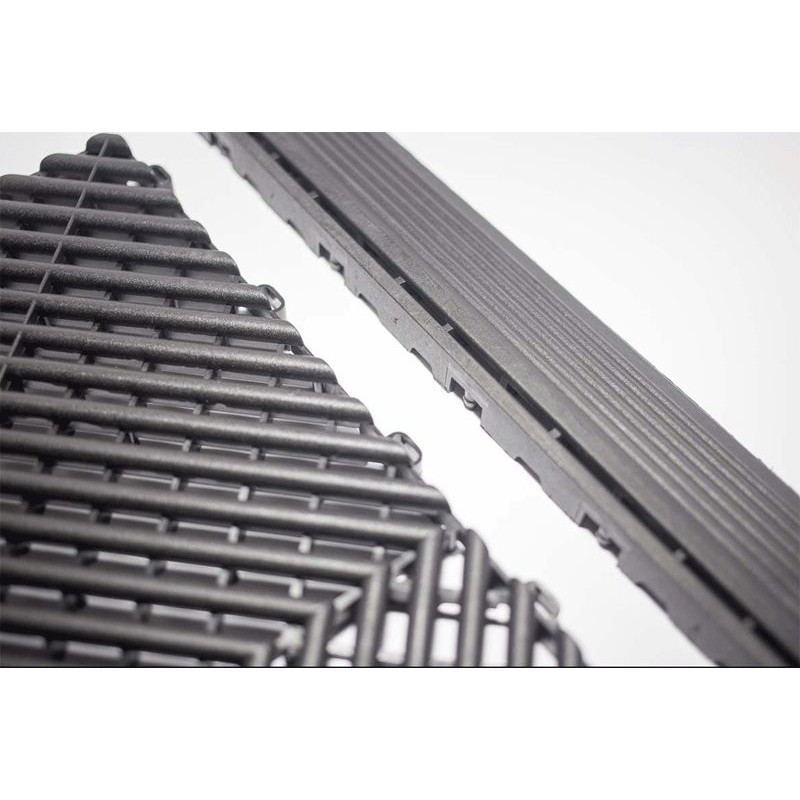 Elles se fixent comme les dalles par simple clipsage. Selon le côté de la dalle, mâle ou femelle, des bordures mâle et des bordures femelles permettent désormais un clipsage impeccable, sans œillets de liaison.